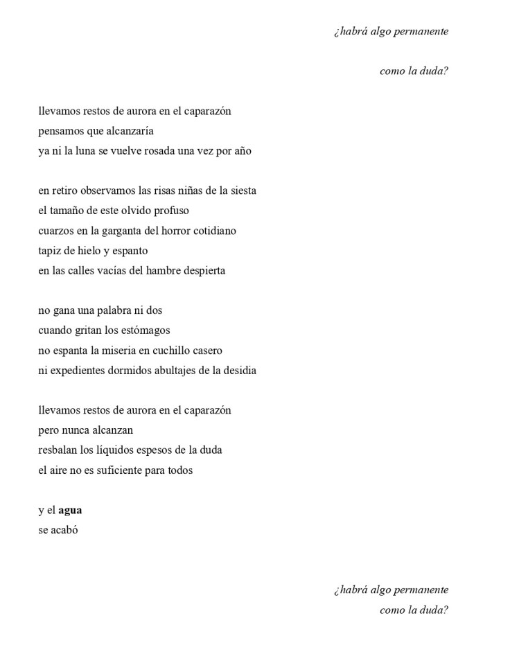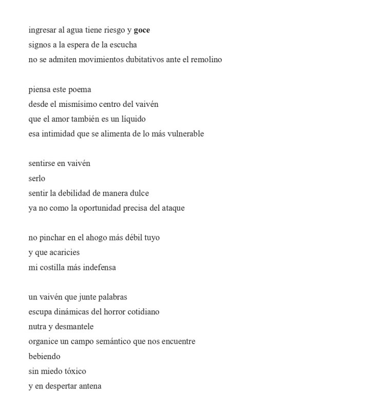> En junio de 2025, Revista Pasajes abrió una convocatoria para recibir contribuciones externas; los poemas que publicamos a continuación fueron seleccionados entre los múltiples textos recibidos a través de la convocatoria y forman parte del libro Vaivén del agua, publicado por Tanta Ceniza Editora, en Neuquén, Argentina (2022).